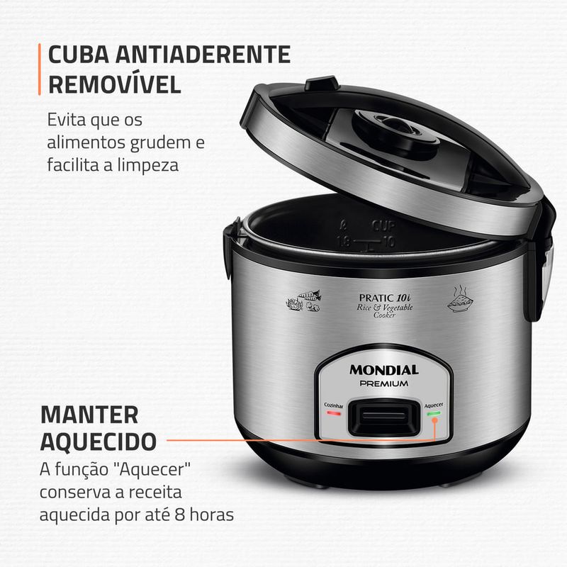 CAPACIDADE DE 10 XÍCARAS: A panela de arroz Mondial tem a capacidade na medida certa para toda a família.