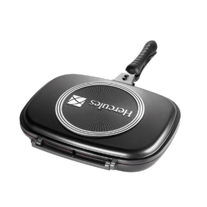 Panela Frigideira Dupla com Revestimento AntiaderenteRobusta frigideira da Hercules fabricada em alumínio fundido com revestimento cerâmico e vedação em silicone. Possui cabo ergonômico em baquelite com fechamento magnético, detalhes que garantem maior conforto e segurança ao seu manuseio. Conta com recipiente coletor de gordura. Com design moderno e muito bonito, a peça é ótima para grelhar alimentos e auxiliar em suas receitas do dia a dia, podendo ser usada tanto aberta, como fechada.mtb