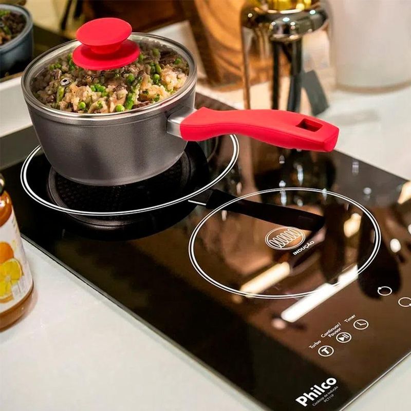 Panela Philco Definitive Pph160apr Redstone com Tampa de Vidro 1,4 L Cinza e Vermelho