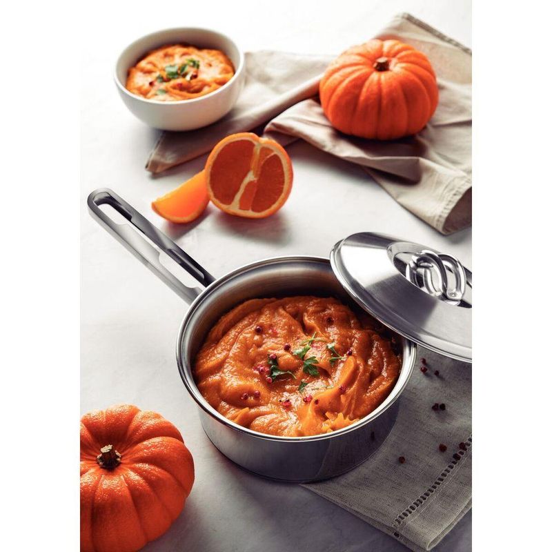 A Panela Tramontina Solar é uma adição indispensável para qualquer cozinha, oferecendo praticidade e qualidade para preparos simples e elaborados. Seu design moderno e diferenciado, característico da linha Solar, traz brilho para sua estação de trabalho. Feita em aço inox de alta durabilidade e com fundo triplo (aço inox + alumínio + aço inox), garante um cozimento uniforme dos alimentos, sem liberar resíduos prejudiciais à saúde.Com capacidade para 1,4 litros, é uma escolha versátil para o dia a dia. Pode ser utilizada em fogões a gás, elétricos, vitrocerâmicos e por indução. Acompanha tampa com saída de vapor e encaixe perfeito, proporcionando praticidade durante o uso. Além disso, pode ser levada ao forno para gratinar ou finalizar pratos, com temperatura máxima de 260°C. Sua limpeza é fácil, podendo ser feita à mão com água, sabão e esponja macia, ou na máquina de lavar louças.