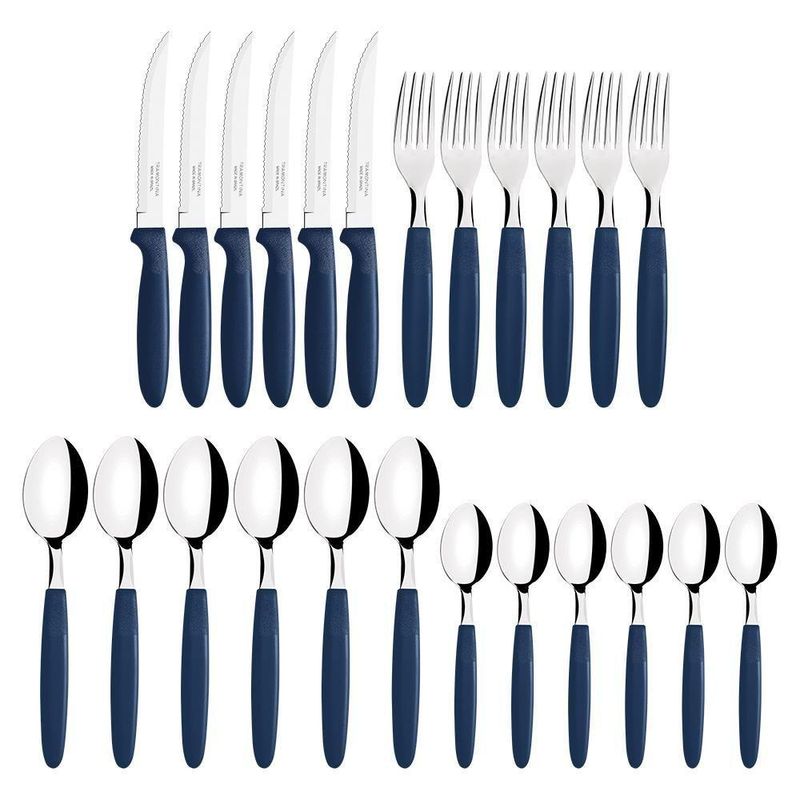 Panela Turim Alumínio Chumbo Antiaderente 1,4l Ptc + Faqueiro Ipanema Azul 24pc - Tramontina