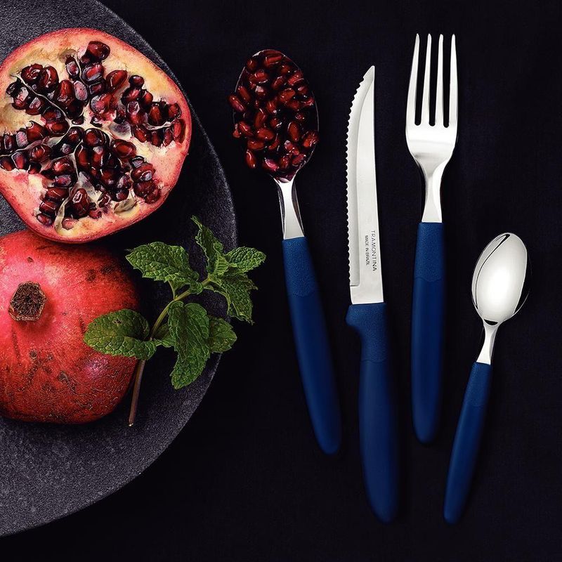 MUITO IMPORTANTE:CONFERIR PRODUTOS NO ATO DO RECEBIMENTO. NÃO ACEITAR PRODUTOS COM EMBALAGEM VIOLADA (AMASSADO, RASGADO, ABERTO, QUEBRADO, ETC), A RECUSA DEVE SER FEITA NO ATO Componentes do Kit:1 - Panela Turim Alumínio Antiaderente Chumbo 16cm 1,4L PTC3 - Tramontina 1 - Conjunto Faqueiro 24 Peças Ipanema Lâmina Inox Cabo Azul - Tramontina Panela Turim Alumínio Chumbo Antiaderente 1,4L PTC + Faqueiro Ipanema Azul 24pc - Tramontina Aprimore sua experiência culinária com o Conjunto Panela Turim e Faqueiro Ipanema da Tramontina, a escolha ideal para quem busca praticidade e estilo na cozinha. Perfeito para uso diário em casa, este kit transforma a forma como você prepara e serve suas refeições. A panela é ideal para criar pratos deliciosos, enquanto o faqueiro completa sua mesa com um toque de elegância. O revestimento antiaderente Starflon T1 da panela garante que a comida deslize, o que é essencial para um cozimento mais fácil e para evitar que os alimentos grudem. A panela de alumínio distribui o calor uniformemente, garantindo um cozimento rápido e eficiente. Já o faqueiro vem com lâminas de aço inox resistentes e cabos de polipropileno confortáveis, proporcionando um manuseio seguro e durável. O conjunto é construído com materiais de alta qualidade, oferecendo a resistência necessária para o dia a dia. A facilidade de limpeza de ambos os itens otimiza o seu tempo, tornando a rotina na cozinha mais simples. Não perca a chance de ter mais beleza e funcionalidade em sua casa. Adquira agora o Kit Tramontina e desfrute da combinação perfeita de design e eficiência. Especificações Panela:- Capacidade: 1,4L;- Alumínio com 1,2mm de espessura;- Revestimento anti-aderente;- Altura com tampa e cabo: 13,9cm;- Altura somente com tampa: 14,4cm;- Altura interna: 6,7cm;- Diâmetro: 16cm;- Comprimento total: 31,9cm;- Garantia de 90 dias para vícios ou defeitos de fabricação;- Não utilizar em temperaturas superiores à 260°C. Especificações Faqueiro:- Lâminas de aço inox.- As lâminas das facas têm maior durabilidade do fio devido ao tratamento térmico.- Os garfos e colheres garantem maior resistência devido a espessura do aço e a estampagem das lâminas.- Os cabos de polipropileno possuem maior resistência e durabilidade. Conteúdo do jogo:- 6 Facas para Churrasco 5 Ipanema: 1,1cm x 2,2cm x 21,3cm C.- 6 Garfos de Mesa Ipanema: 1,6cm A x 1,6cm L x 19,1cm C.- 6 Colheres de Mesa Ipanema: 1,7cm A x 4cm L x 19cm C.- 6 Colheres de Chá Ipanema: 1,3cm A x 2,7cm L x 13,9cm C. Cor: Azul | É kit de fábrica: Não | Quantidade de Peças: 25 | Materiais: Alumínio | Adequado para fogão de indução: Não | Com revestimento antiaderente: Sim