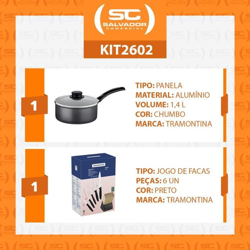 MUITO IMPORTANTE:CONFERIR PRODUTOS NO ATO DO RECEBIMENTO. NÃO ACEITAR PRODUTOS COM EMBALAGEM VIOLADA (AMASSADO, RASGADO, ABERTO, QUEBRADO, ETC), A RECUSA DEVE SER FEITA NO ATO Componentes do Kit:1 - Panela Turim Alumínio Antiaderente Chumbo 16cm 1,4L PTC3 - Tramontina1 - Jogo de 5 pç e Suporte Madeira Facas Plenus com Lâminas em Aço Inox - Tramontina Panela Turim Alumínio Chumbo Antiaderente 18cm 1,4l Ptc + Jogo de Facas Plenus - Tramontina Aprimore o nível da sua cozinha com a Panela Turim em Alumínio Antiaderente Tramontina e o Jogo de Facas Plenus, a solução ideal para quem busca eficiência e precisão. Perfeita para uso doméstico, a panela Turim otimiza o preparo de suas refeições diárias, enquanto o jogo de facas garante cortes precisos e eficientes. O revestimento antiaderente Starflon T1 impede que os alimentos grudem, facilitando o cozimento e a limpeza. Com capacidade de 1,4 litros, a panela é ideal para porções menores, garantindo mais agilidade no seu dia a dia. A panela, com sua espessura de 1,2mm, assegura um aquecimento uniforme e rápido. O kit inclui um Jogo de Facas Plenus, com lâminas de aço inox de alta durabilidade e cabos de polipropileno, o que permite preparar qualquer tipo de receita com facilidade. Construído em alumínio com revestimento antiaderente Starflon T1, este conjunto oferece durabilidade e resistência para o uso contínuo. A tampa de vidro temperado e o cabo de baquelite garantem segurança e praticidade no manuseio. Não perca a oportunidade de ter um conjunto completo e funcional. Adquira já o seu e prepare pratos incríveis com total facilidade! Especificações Técnicas:- As lâminas de aço inox têm maior durabilidade do fio devido ao tratamento térmico.- Os cabos de polipropileno possuem maior resistência e durabilidade.- Suporte de madeira e polipropileno.- Podem ir à máquina de lavar louças facilitando seu dia a dia.- Cor do cabo: Preto- Material do cabo: Polipropileno- Dimensões Produto: 30cm A x 12cm L x 21cm C. Conteúdo do jogo:1 - 29900500 - Base de Madeira1 - 23426007 - Faca Chef Lâmina 7 (17,78cm)1 - 23425005 - Faca Desossar Lâmina 5 (12,7cm)1 - 23420003 - Faca para Legumes e FrutasLâmina 3 (7,62cm)1 - 23428005 - Faca para Tomates Lâmina 5 (12,7cm)1 - 23432000 - Garfo Trinchante Especificações Panela:- Capacidade: 1,4L;- Alumínio com 1,2mm de espessura;- Revestimento anti-aderente;- Altura com tampa e cabo: 13,9cm;- Altura somente com tampa: 14,4cm;- Diâmetro: 16cm;- Comprimento total: 31,9cm;- Não utilizar em temperaturas superiores à 260°C. Perguntas Frequentes:- Qual a capacidade da panela?A panela Turim tem capacidade para 1,4 litros, ideal para preparar porções menores. - Qual a principal característica do revestimento da panela?A panela possui revestimento antiaderente Starflon T1, que impede que os alimentos grudem. - É seguro usar a panela em altas temperaturas?Sim, a panela pode ser usada, mas não é recomendado exceder a temperatura de 260°C. Cor: Cinza | É kit de fábrica: Não | Quantidade de Peças: 6 | Materiais: Alumínio | Adequado para fogão de indução: Não | Com revestimento antiaderente: Sim