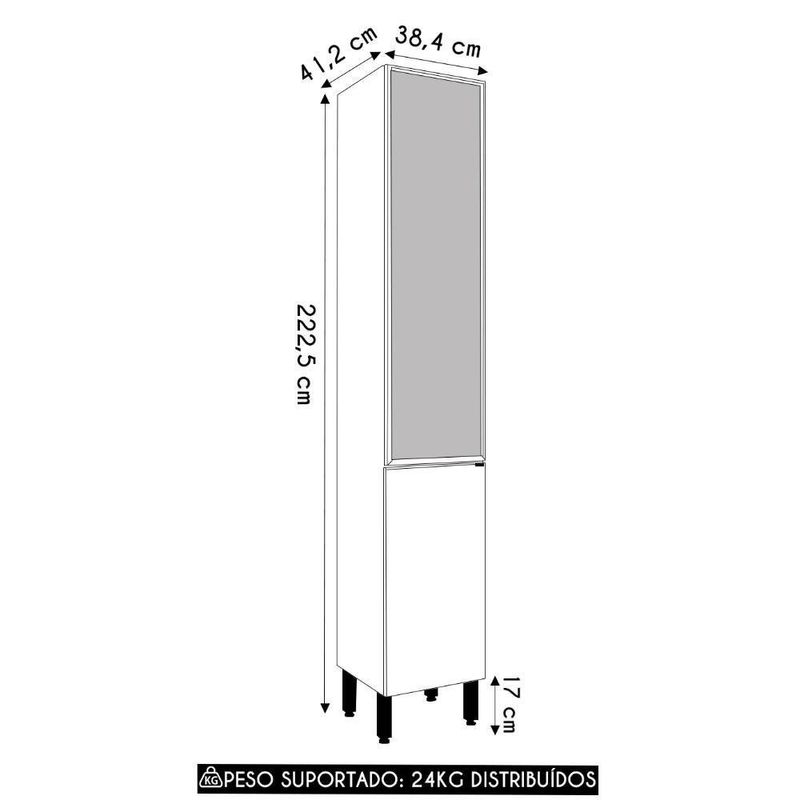 Com estrutura em MDP de 12 e 15mm e acabamento em pintura UV, o Paneleiro assegura máxima resistência no uso diário. Ideal tanto para uma Cozinha Compacta quanto para ambientes mais amplos, ele se adapta a diferentes necessidades e estilos. Dispõe de 3 prateleiras internas para expor taças, louças, porcelanas ou organizar itens de sua preferência. Os pés são reguláveis, permitindo ajustar pequenos desníveis de piso e manter a estabilidade do produto.
