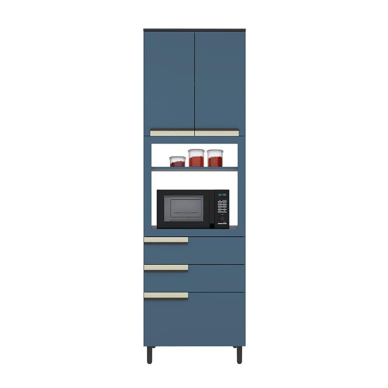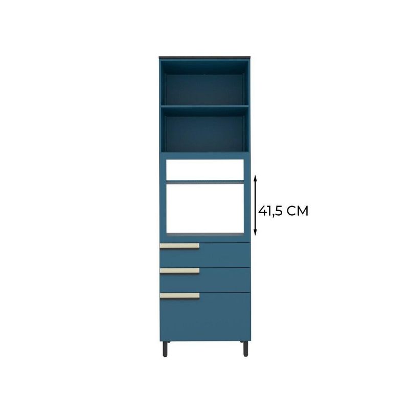ESTRUTURA O Paneleiro Torre Quente Herval Manhattan, confeccionado com MDP e com bordas em PVC, alia resistência e durabilidade, garantindo longa vida útil. Sua estrutura é reforçada com minifix, parafusos e cavilhas, proporcionando maior estabilidade. As corrediças telescópicas e dobradiças caneco com amortecedor garantem um deslizamento suave da gaveta e um fechamento silencioso das portas, respectivamente. Os puxadores em madeira adicionam um toque de elegância, enquanto as sapatas de plástico conferem um design moderno e funcional. PINTURA Com seu acabamento em Azul Orion, o Paneleiro Torre Quente Herval Manhattan une elegância e modernidade, adaptando-se a diversos estilos de decoração. Sua pintura UV garante durabilidade e resistência, tornando-o uma escolha perfeita para qualquer ambiente.