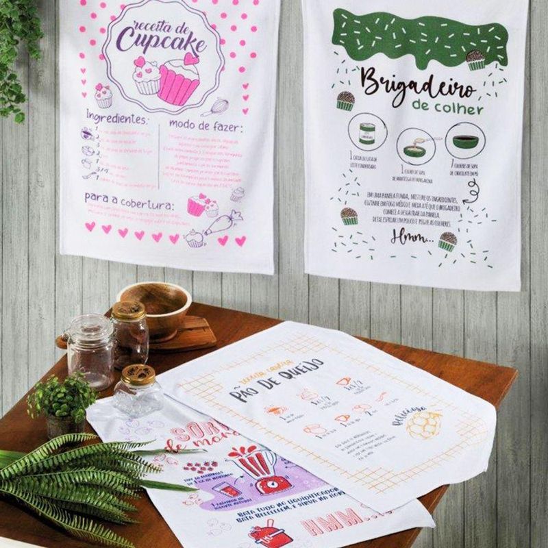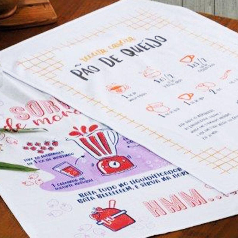 Conteúdo e Medidas: Pano de Prato Sacaria Especial Receitas -06 Peças