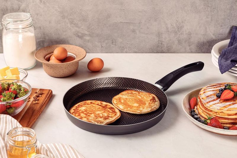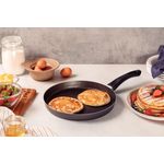 Preparar aquela panqueca ou tapioca deliciosa para seu café da manhã, fica muito mais prático com a panquequeira Tramontina Paris em alumínio com revestimento interno e externo antiaderente Starflon Max chumbo 28 centímetros 1,8 litros. Indispensável para uso no dia a dia, ela é produzida em alumínio com espessura de 1,8 milímetros e conta com revestimento interno e externo em antiaderente Starflon Max, características que evitam que os alimentos grudem em sua superfície, a tornam fácil de limpar, mais durável e não prejudicial a saúde. Pensando em sua segurança, o cabo é em baquelite antitérmico, material que não aquece. A panquequeira ainda pode ser levada à máquina de lavar louças e vai deixar seu dia a dia muito mais prático. Escolha Tramontina e transforme a hora de preparar suas refeições!