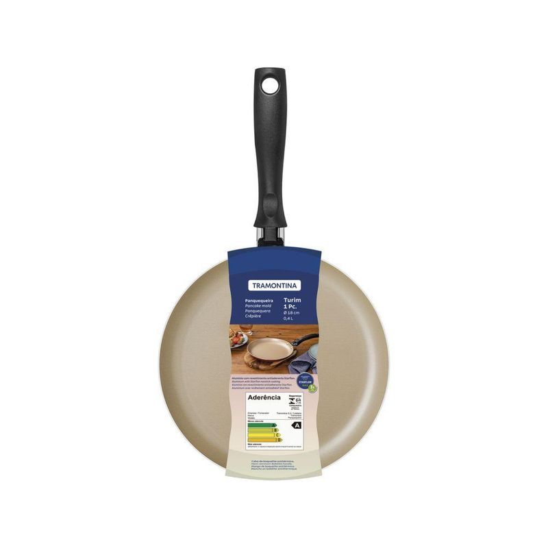 Panqueca, tapioca ou mesmo uma pizza de frigideira, com a panquequeira Tramontina Turim em alumínio com revestimento interno e externo em antiaderente Starflon Max Vermelha 18 centímetros de diâmetro todas essas receitas ficam muito mais fáceis de serem preparadas. Desenvolvida em alumínio com revestimento interno e externo em Starflon Max, ela cozinha os alimentos de maneira rápida e uniforme, sem que eles grudem em sua superfície, sendo devido a isso, superfácil de limpar, mais durável e não prejudicial à saúde. Para sua segurança, seu cabo é em baquelite antitérmico e oferece maior segurança durante o manuseio, pois não aquece. A panquequeira ainda pode ser levada à máquina de lavar louças e vai facilitar seu dia a dia na cozinha. Escolha Tramontina e prepare suas panquecas de maneira muito mais prática, seja ela doce ou salgada!