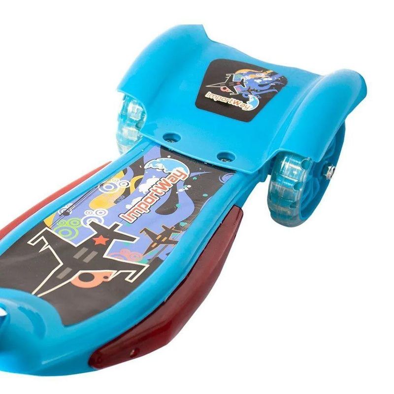 O Patinete Infantil 3 Rodas é diversão garantida. Suas 3 rodas proporcionam um equilíbrio e uma estabilidade maior para a criança, oferecendo uma diversão segura e ao mesmo tempo radical. Com um sistema de luzes e música em sua base, a diversão toma uma nova proporção, com muita alegria e diversão.CaracterísticasPatinete Infantil 3 RodasMúsica: SimLuzes: SimTamanho das rodas Dianteira de 6 e rodas traseiras com 5Freio Sim, traseiro duploDobrável: SimCarga máxima 25kgMontagem necessáriaDobrávelFreio traseiro duploProduto certificado pelo INMETRODimensõesAltura 2,7 cmLargura 16 cmComprimento 49 cmPeso 2,7 kgPatinete Infantil 3 Rodas com Cesta e Luzes