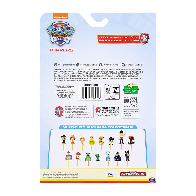O trio de Toppers da Patrulha Canina traz três figuras dos personagens dessa turma aventureira. São 10 personagens no total e 5 trios diferentes que podem ser usados como acessórios para lápis, canetas e lapiseiras, sendo possível levar seu personagem preferido para todos os lugares. As figuras também são ideais para colecionar ou brincar embarcando nas aventuras da turma.