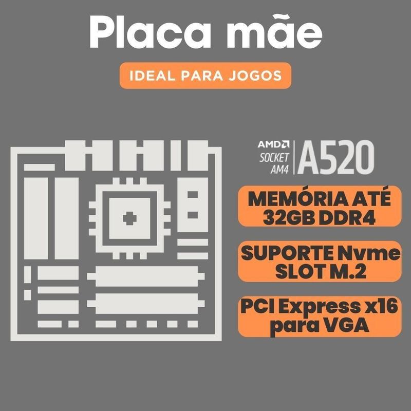 Processador: AMD Ryzen 5 5600G (6 núcleos, 12 threads, até GHz)