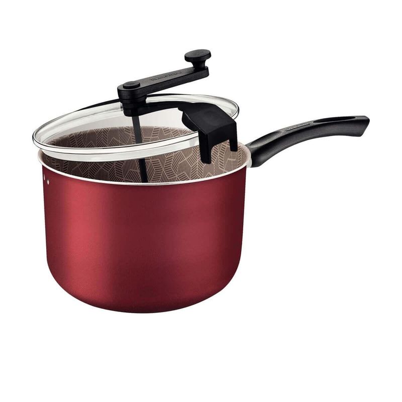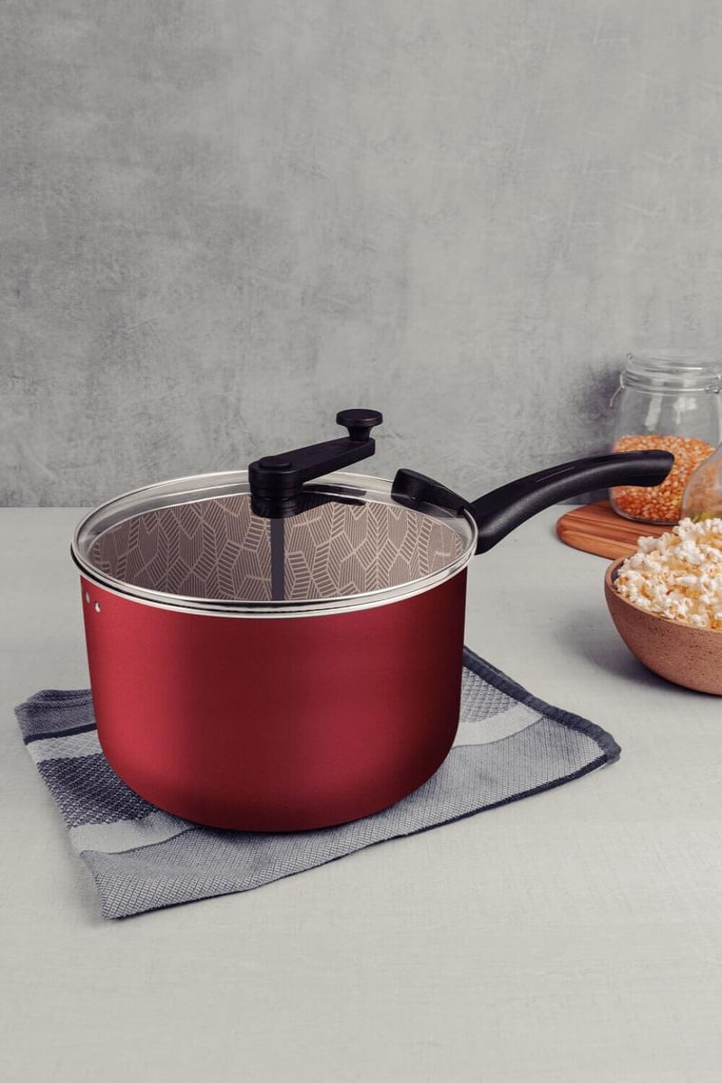 A pipoqueira Tramontina Paris em alumínio com revestimento interno e externo em antiaderente Starflon Max vermelho 22 centímetros de diâmetro 4,8 litros é a escolha ideal para preparar aquela pipoca saborosa para seu lanche e acompanhar seu filme preferido. Com produção em alumínio com revestimento interno e externo em antiaderente Starflon Max, ela garante que o milho da pipoca estoure rapidamente e uniformemente, sem que grudem em sua superfície. Sua tampa é em vidro temperado com borda de silicone, não gira durante o preparo e garante um manuseio mais seguro, pois seu cabo e manípulo são em materiais antitérmicos. A pipoqueira ainda é superfácil de limpar e pode ser lavada na máquina de lavar louças!