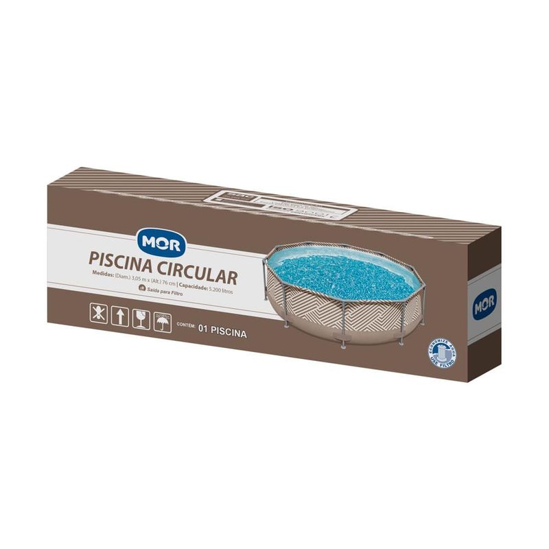 Para ajudar a driblar o calor do verão, a Piscina Circular 5.000 litros é uma ótima alternativa! Ela possui peças plásticas de alta resistência que diminuem possíveis arranhões e marcas no piso, fitas em PVC fixas ao redor da lona, proporcionando maior estabilidade estrutural à piscina, além da tripla camada de sua lona (duas lâminas de PVC com uma trama de poliéster entre elas) que garante durabilidade. Sua estrutura é feita em aço com pintura epóxi à pó e peças plásticas em polipropileno, sendo de fácil montagem e manutenção. Conta ainda com válvula de deságue e entrada para filtro, facilitando sua limpeza. A Piscina 5.000 litros será a alegria das tardes de verão!Atenção! Nunca deixe crianças sozinhas perto da água sem supervisão de um adulto.