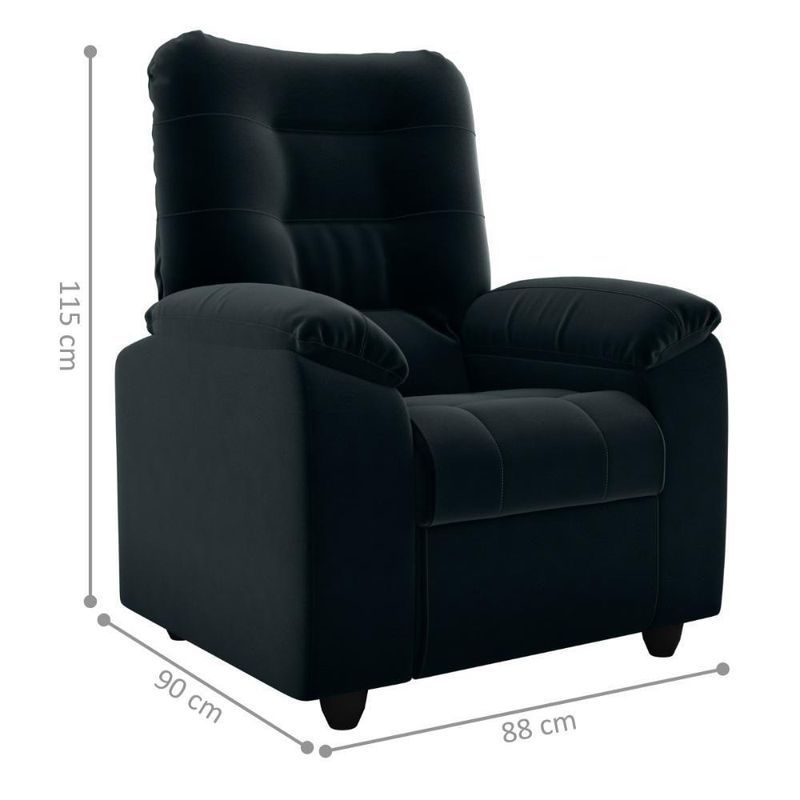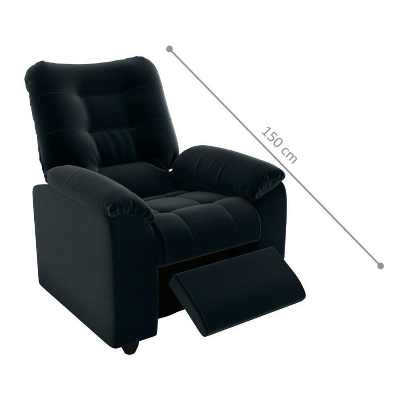 Poltrona Almofadada Reclinável Bristol Veludo Inca Preto