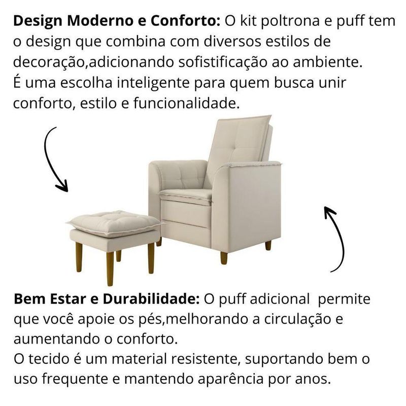 Poltrona Amamentação Confortável Com Puff Ivy Suede Cor:bege