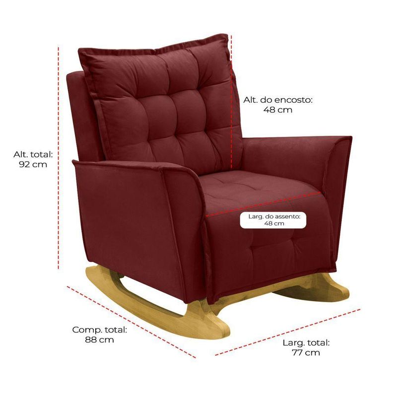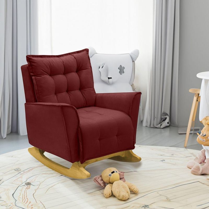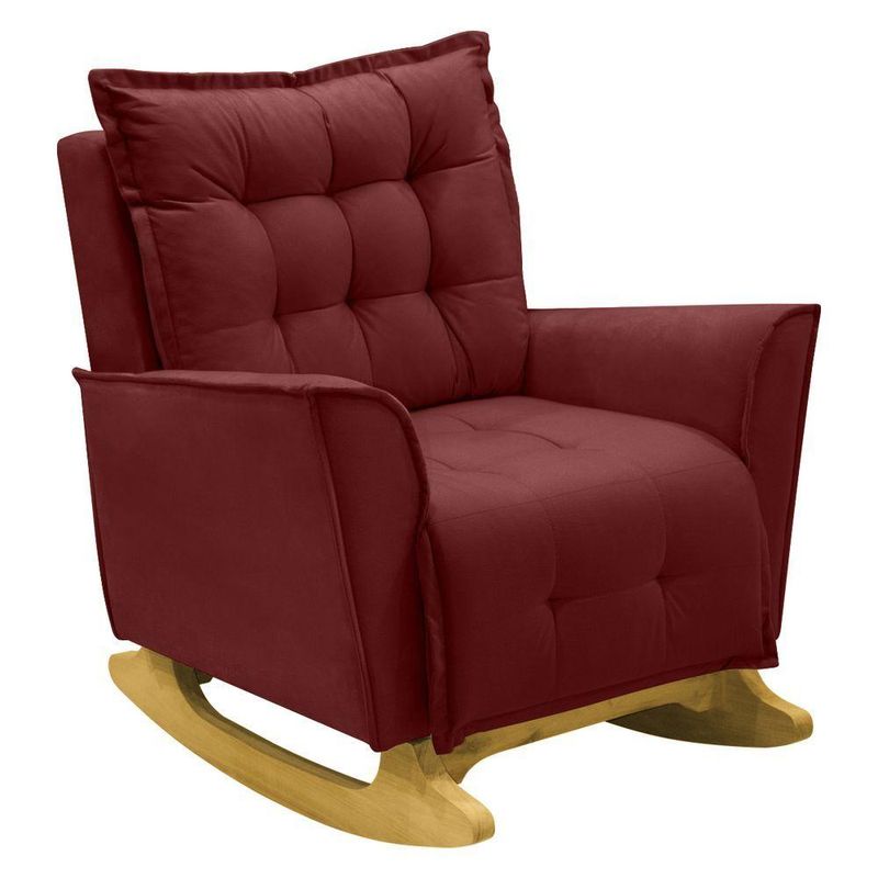 Poltrona Amamentação De Balanço Helena Veludo Quarto Bebê Bordô