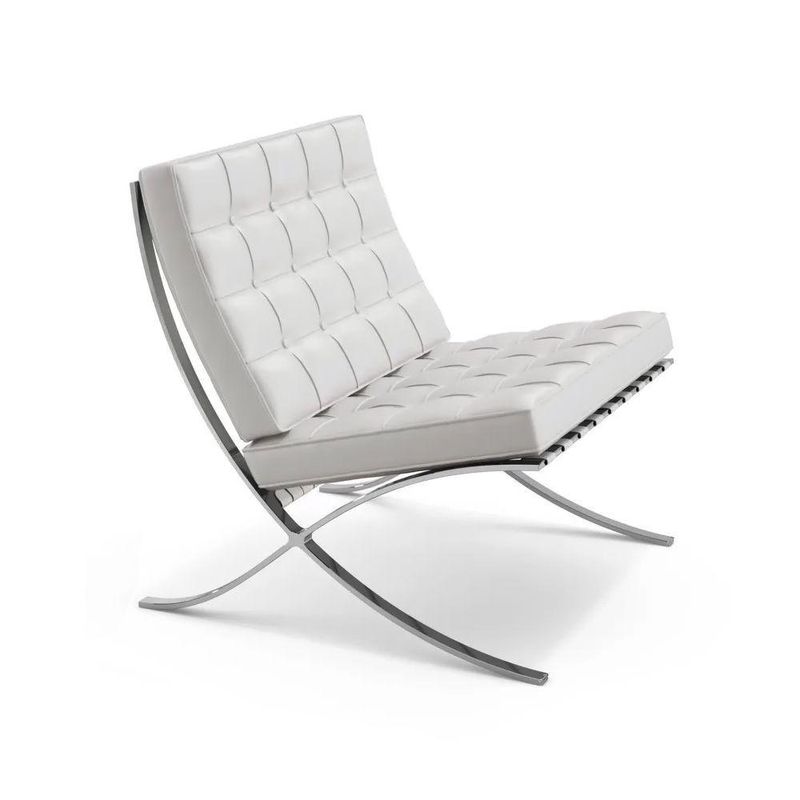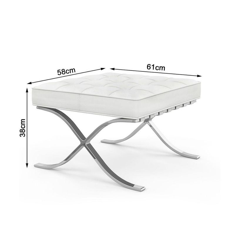 Poltrona Barcelona Couro Natural Com Puff Cromada Branco