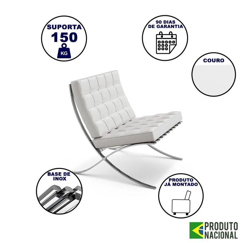 Poltrona Barcelona Inox Couro Branco