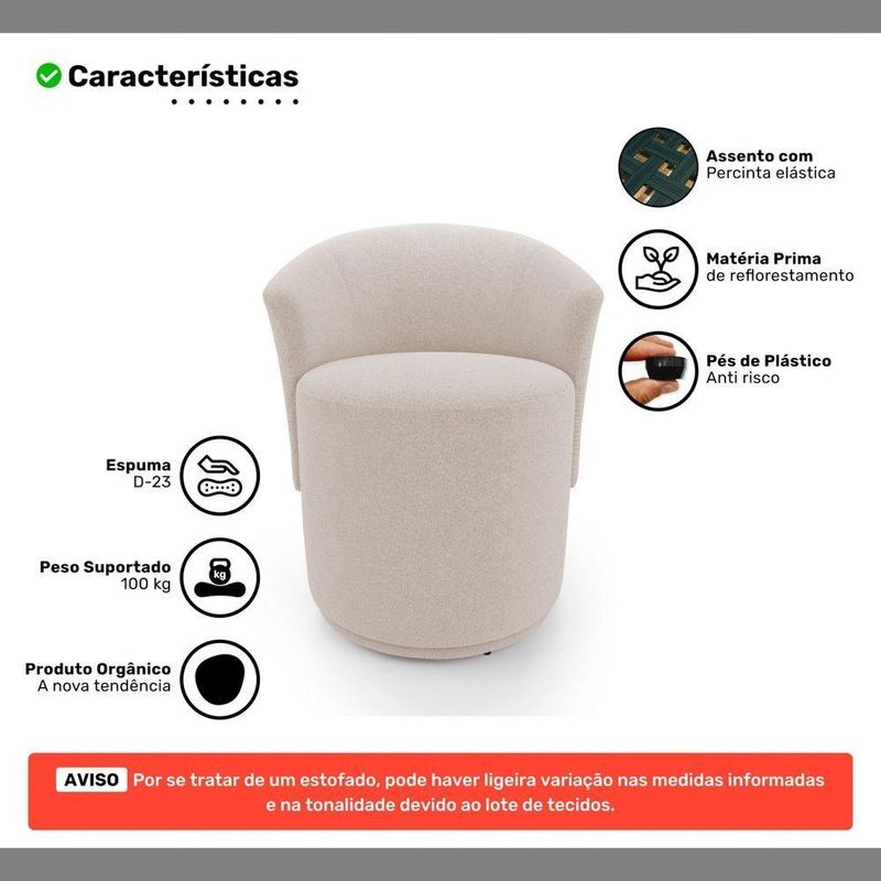 Poltrona Com Puff Orgânico Living Mavi Bouclê Bege - Desk Design
