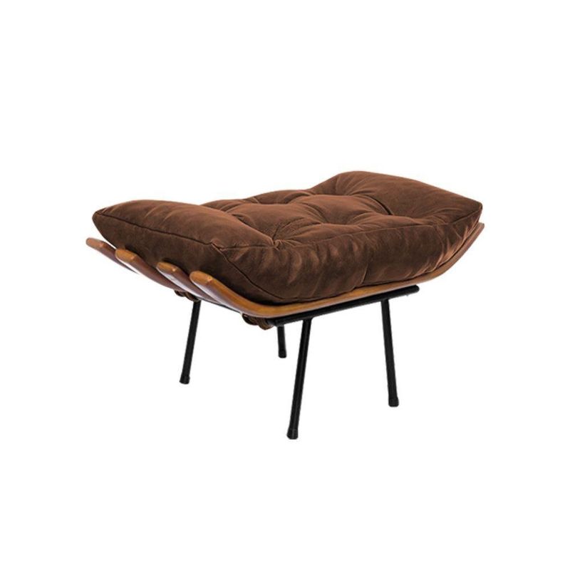 Poltrona Costela Com Puff Couro Legitimo Marrom