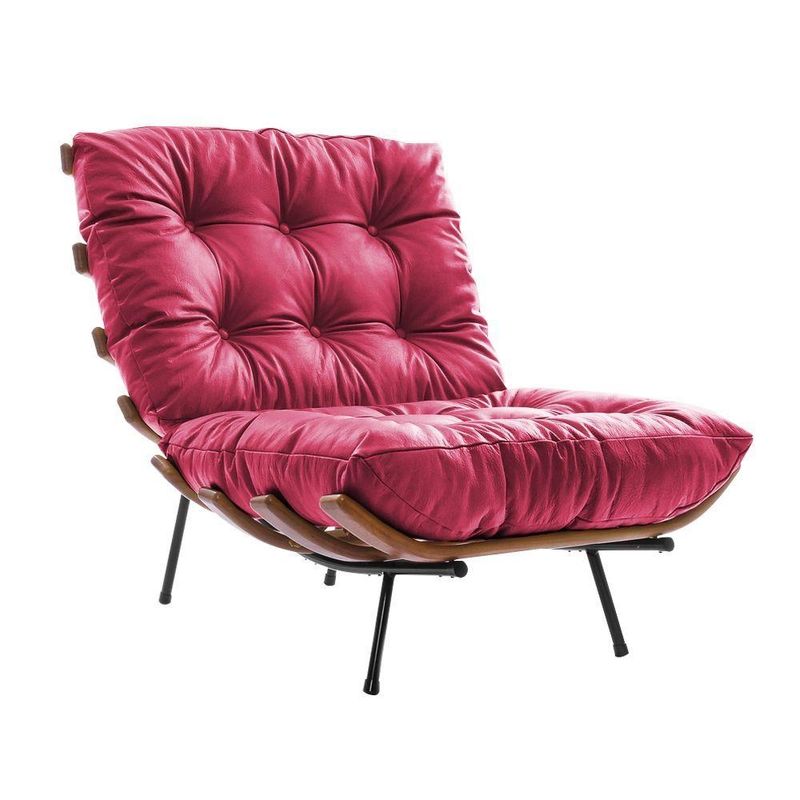 Poltrona Costela Com Puff Em Couro Sintético Rosa