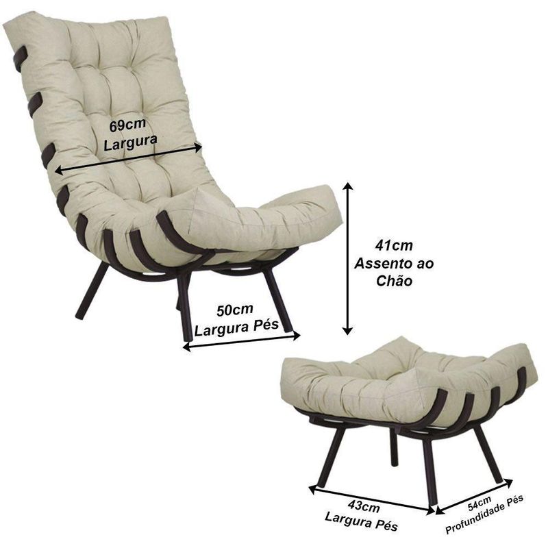Seus pes delicados valorizam seu revestimento com enchimento em fibra acrilica. Sua robustez alem de marcar presenca no ambiente, oferece conforto inigualavel, uma peca chave para uma decoracao impecavel e de bom gosto.