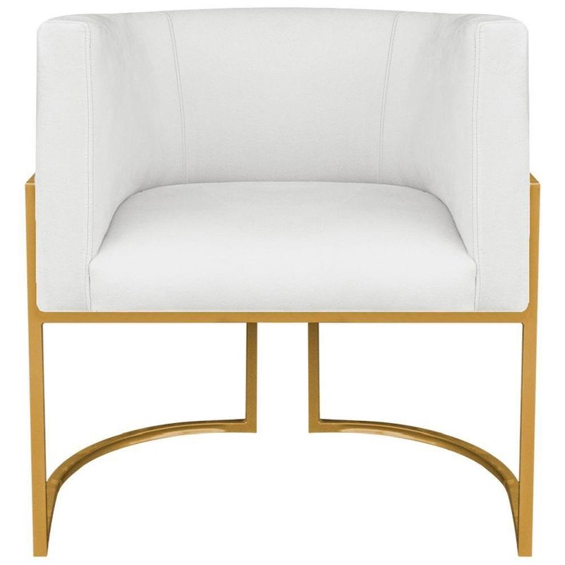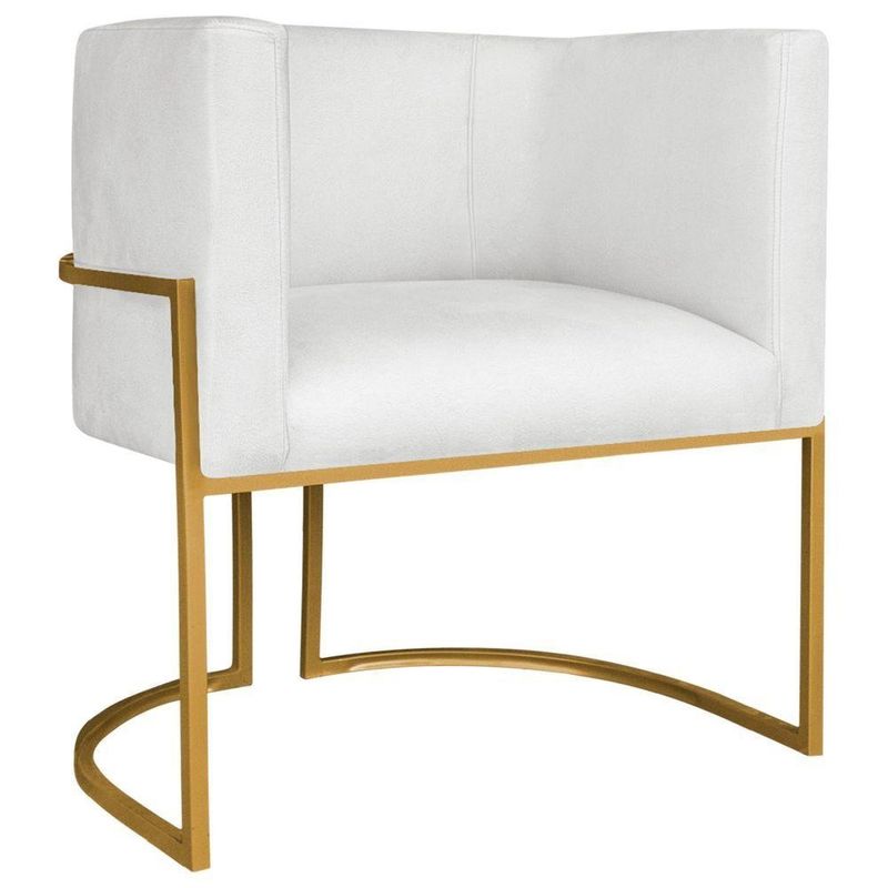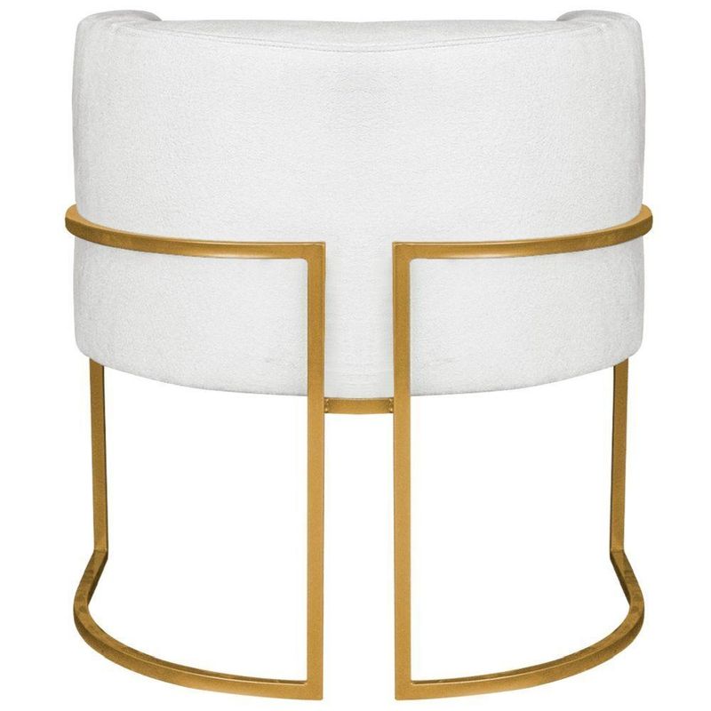 Poltrona Dália Luxo Moderna Estofada Design Sofisticado Com Base De Ferro Dourado Bouclé Branco