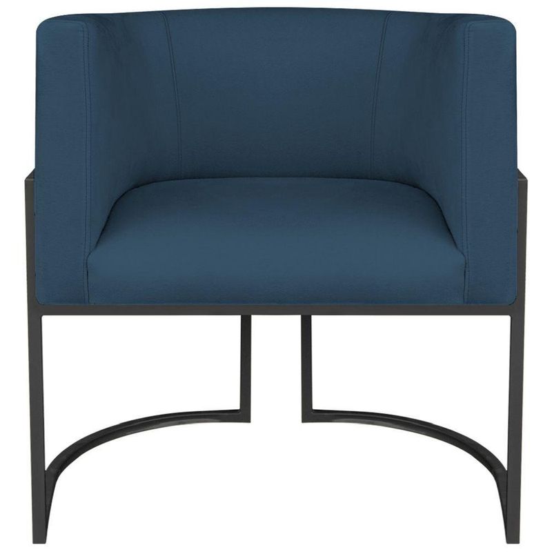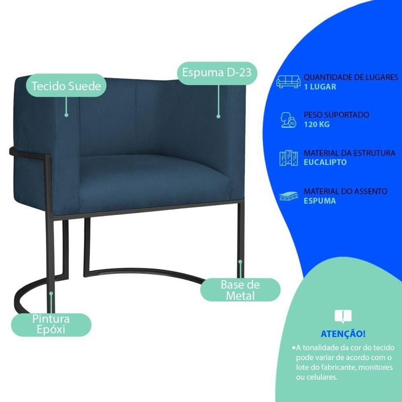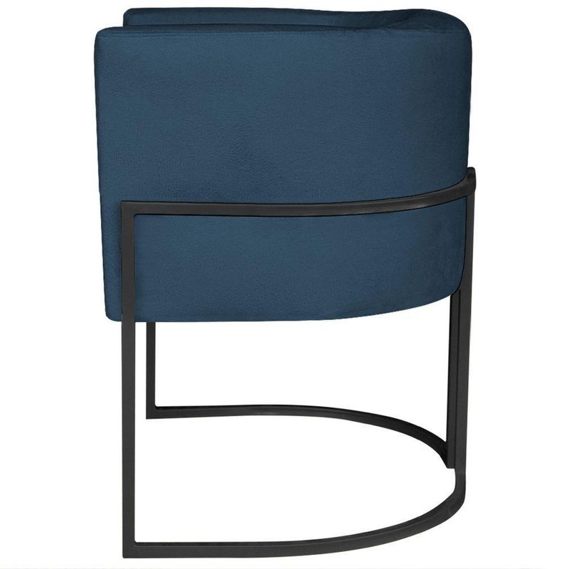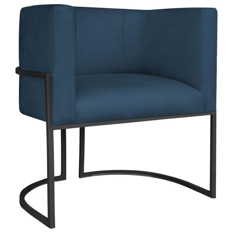 Poltrona Dália Luxo Moderna Estofada Design Sofisticado Com Base De Ferro Preto Suede Azul Marinho