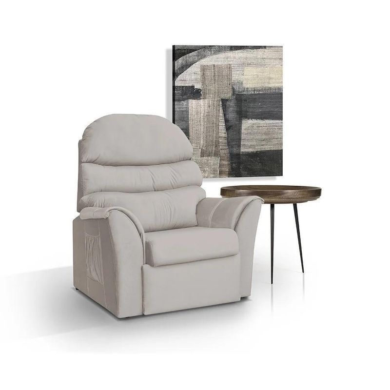 Poltrona De Amamentação Reclinável E Retrátil Confortável Veludo Bege