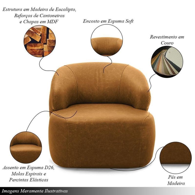 Poltrona Decorativa Charlote Sala De Estar Base Fixa Couro Caramelo Manchado G88 - Gran Belo