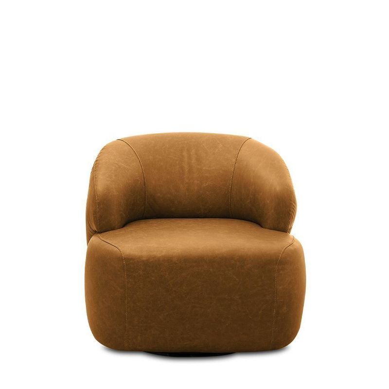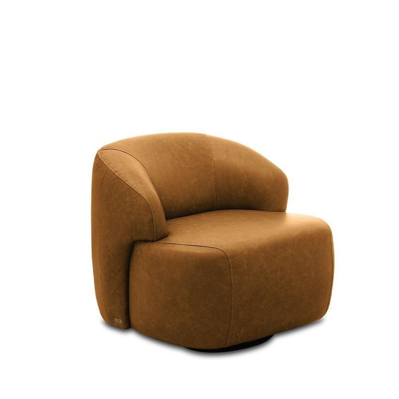 Poltrona Decorativa Charlote Sala De Estar Base Giratória Em Aço Couro Caramelo Manchado G88 - Gran Belo