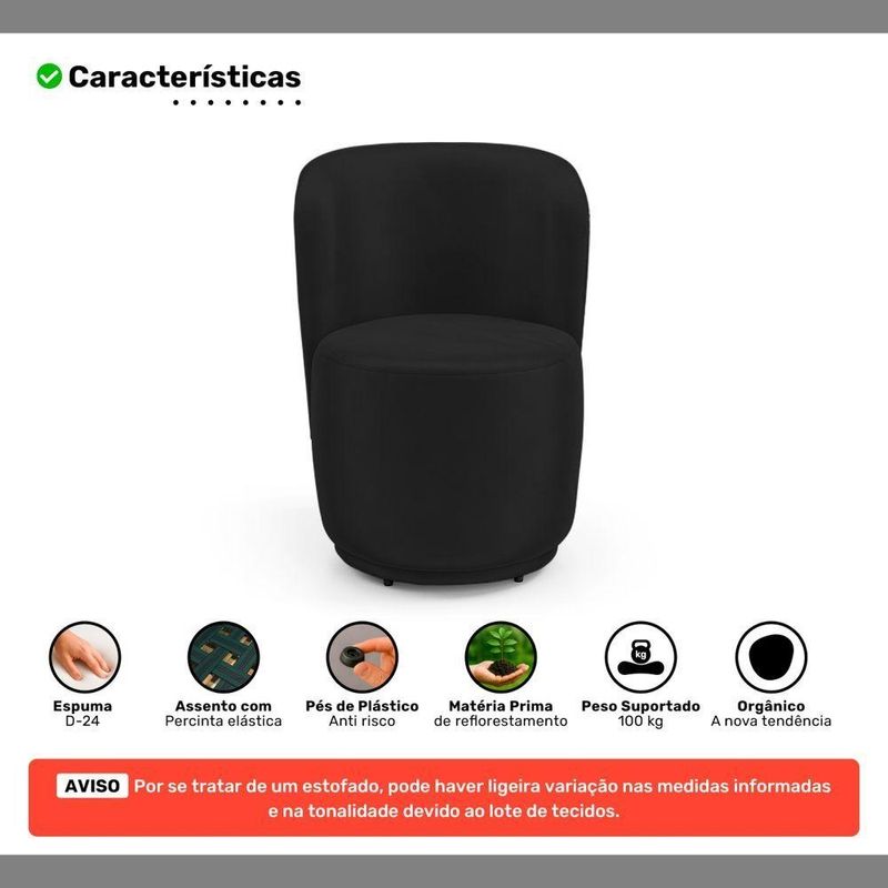 Poltrona Decorativa Com Puff Orgânico Molly Veludo Preto - Desk Design