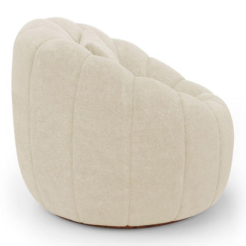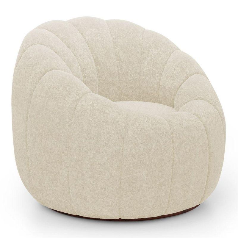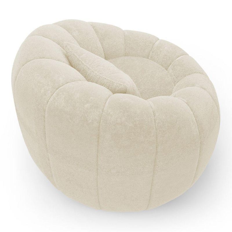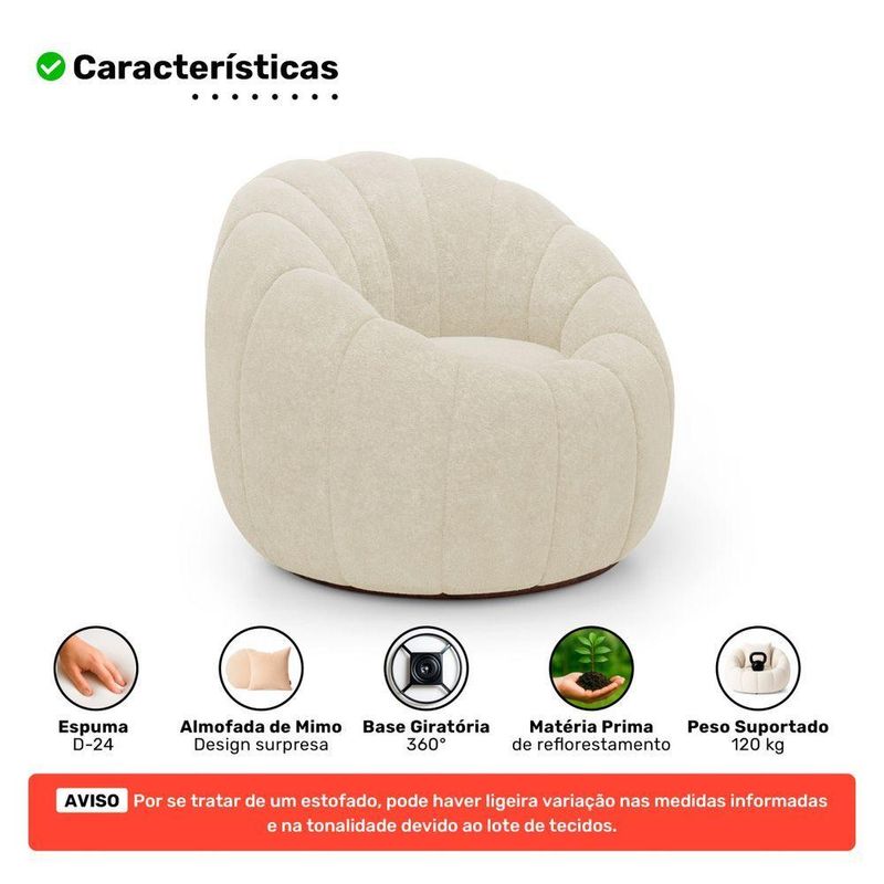 Poltrona Decorativa Concha Giratória Com Puff Estilo Abóbora Shell Bouclê Bege - Desk Design