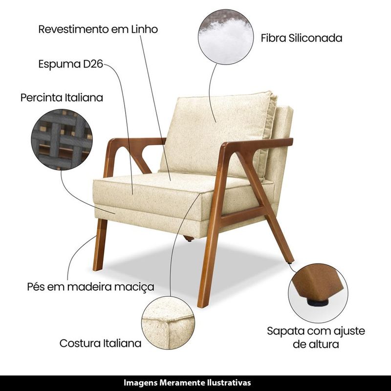 Poltrona Decorativa De Luxo Frida Linho - Gran Belo traz elegância e conforto, a poltrona Frida Luxo foi projetada com que há de melhor, traz para o ambiente requinte, com madeira maciça na cor mel, almofada solta 100% fibra siliconada e acabamento em costura italiana se torna única. Adquira já o que há de melhor em conforto e elegância! Dimensões do Produto: