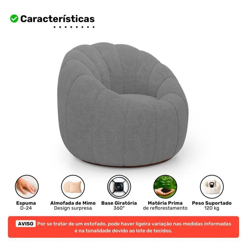 Poltrona Decorativa Estilo Concha Abóbora Shell Giratória Bouclê Cinza Escuro - Desk Design