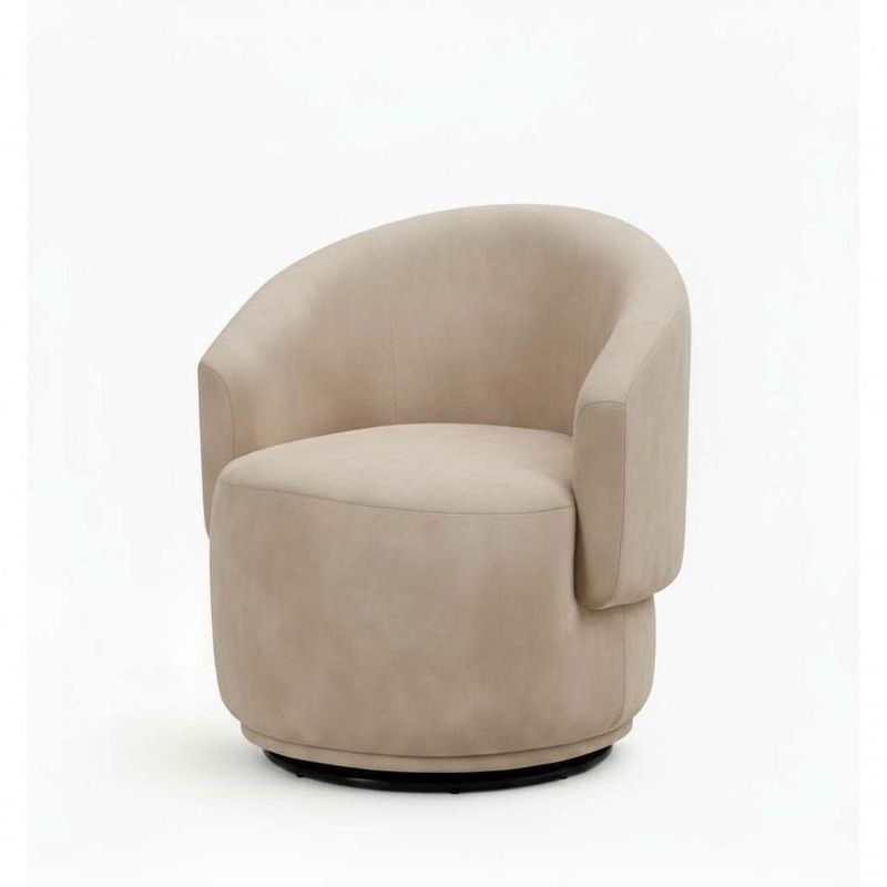 Poltrona Decorativa Giratória Sala De Estar Recepção Jasmine Suede Bege