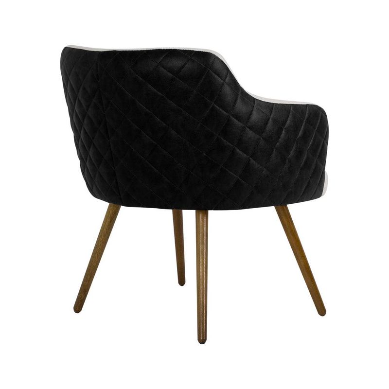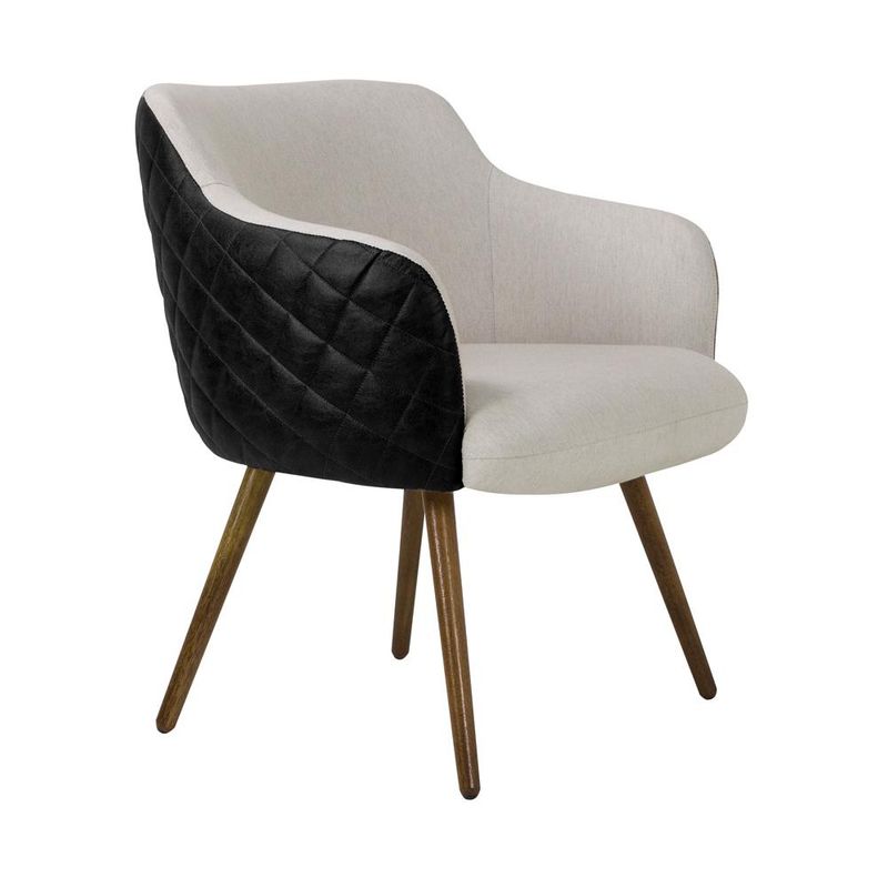 MóveisPoltronaPoltrona Decorativa Kitana Pés Palito PU Sintético/Linho Preto/Areia G15 - Gran Belo