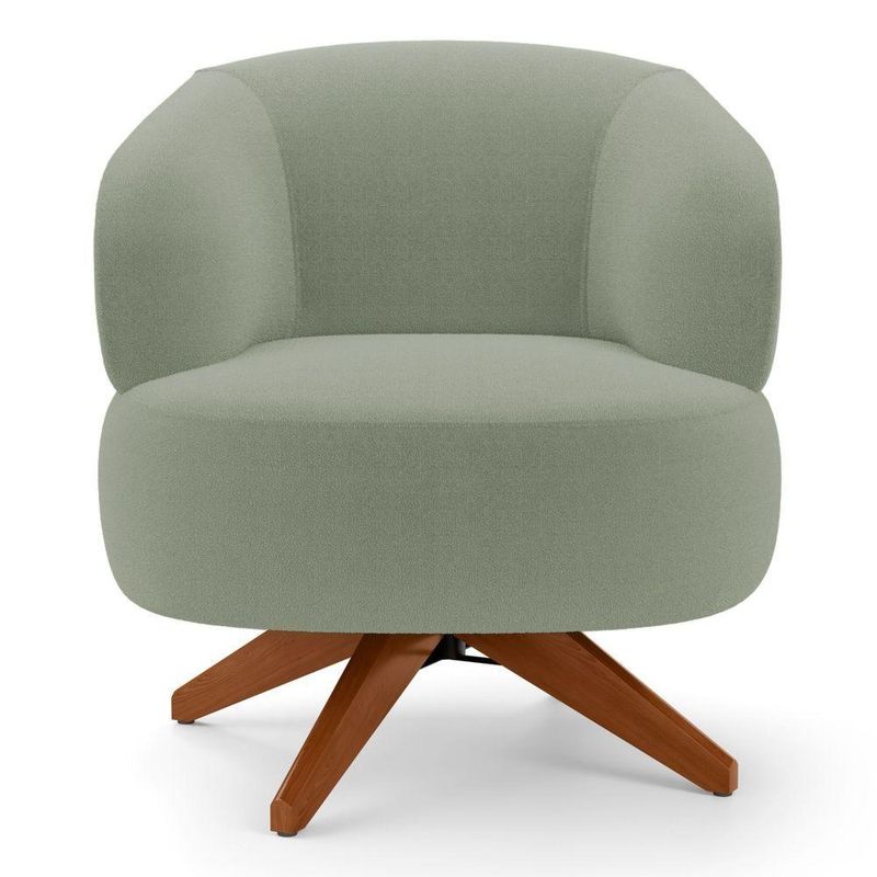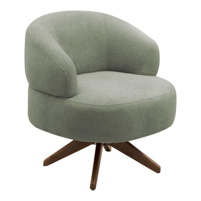 Poltrona Decorativa Orgânica Living Have Base Madeira Giratória Bouclê Verde Oliva - Desk Design