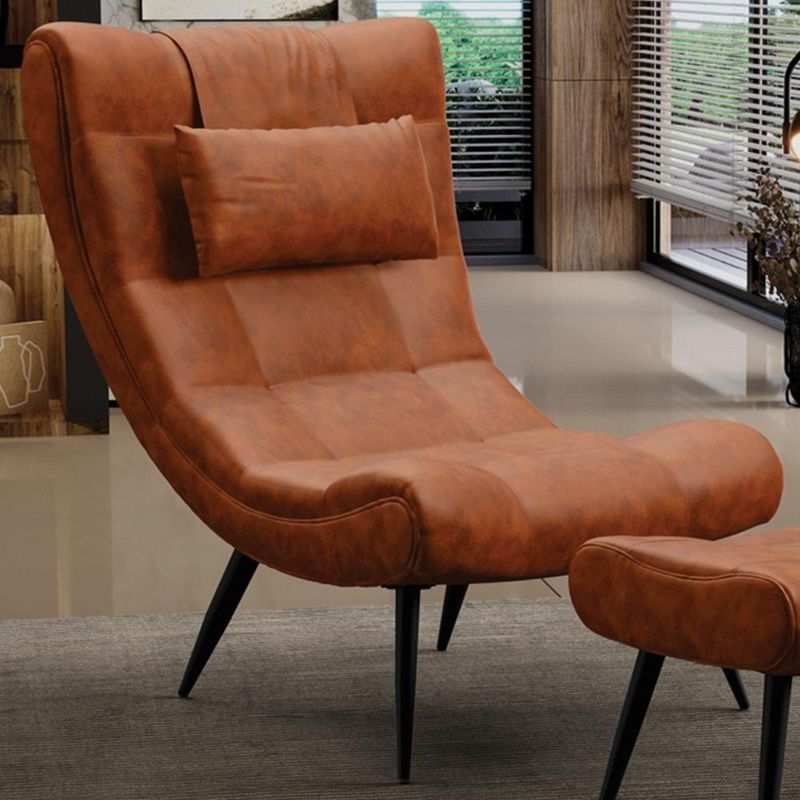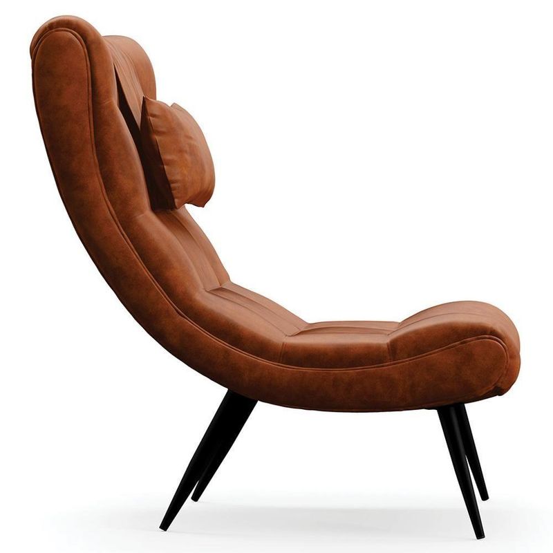 Poltrona Decorativa Para Sala De Estar Com Almofada E Pés Palito Lord Sintético Nozes - Ibiza