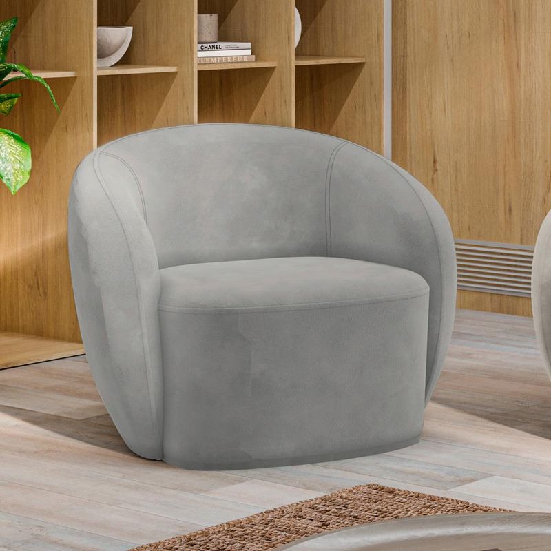 MóveisPoltronaPoltrona Decorativa Sala de Estar Íbis Encosto Fixo Veludo Cinza G33 - Gran Belo