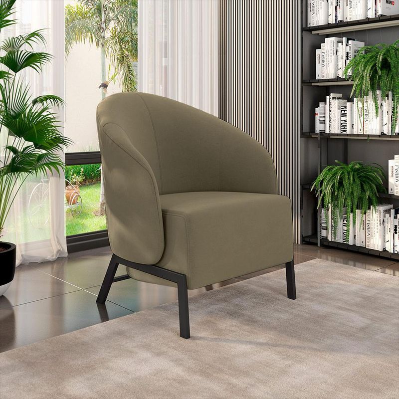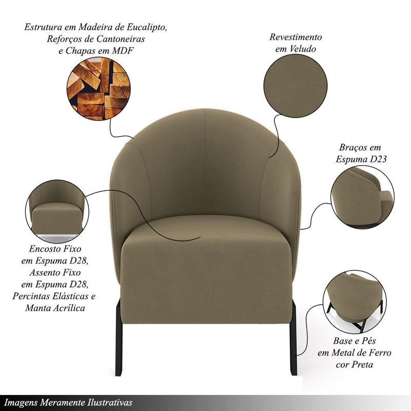 MóveisPoltronaPoltrona Decorativa Sala de Estar kenya Pés em Ferro Veludo Preto/Castor G33 - Gran Belo