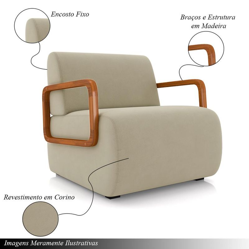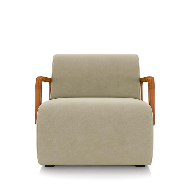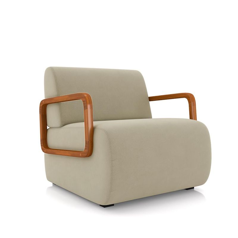 MóveisPoltronaPoltrona Decorativa Sala de Estar Odessa Braços em Madeira Veludo Bege G33 - Gran Belo