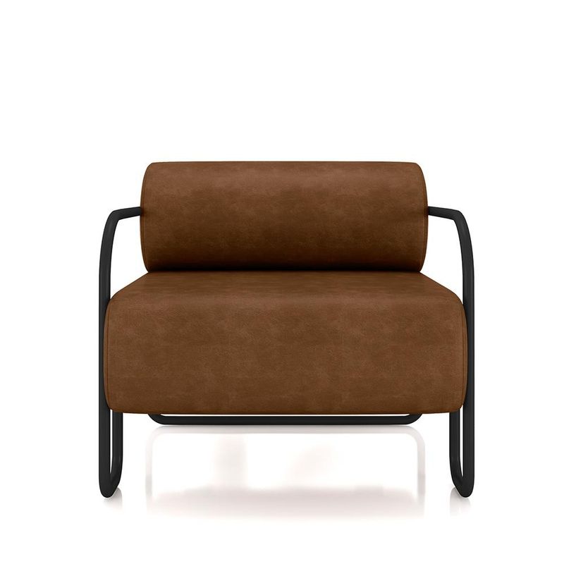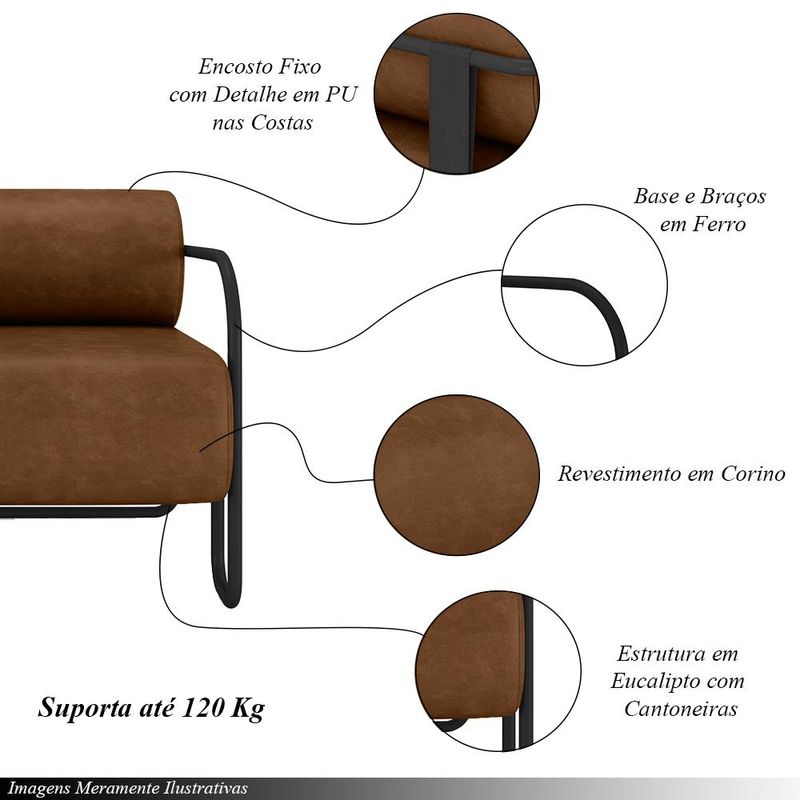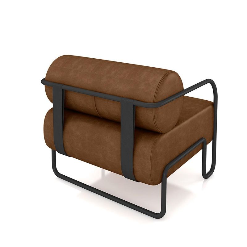 MóveisPoltronaPoltrona Decorativa Sala de Estar Polatsk Base Industrial de Ferro PU Marrom G33 - Gran Belo