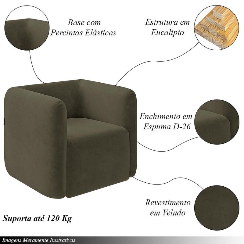 MóveisPoltronaPoltrona Decorativa Sala de Estar Trinidad Base Fixa Veludo Castor G33 - Gran Belo