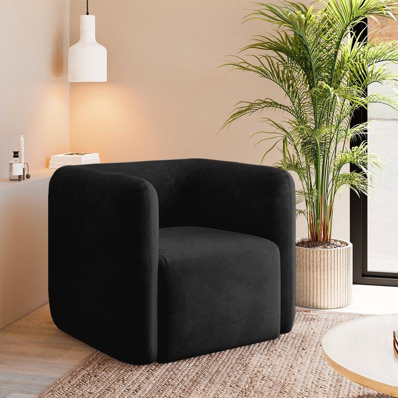 A Poltrona Trinidad é construída com materiais de alta qualidade, como madeira de reflorestamento tratada e chapas de MDF reforçadas, garantindo durabilidade e resistência excepcionais. O assento fixo da Poltrona Trinidad é preenchido com espuma D26 e suportado por percintas elásticas, proporcionando suavidade e apoio ideal. O encosto fixo conta com espuma D23 para relaxamento completo. Com seu revestimento em veludo luxuoso, a Poltrona Trinidad não só adiciona um toque de sofisticação ao seu espaço, mas também é fácil de limpar e manter. Seus braços fixos com espuma D23 oferecem suporte adicional. Os pés em plástico preto não só complementam o design moderno da poltrona, mas também garantem estabilidade sólida em diferentes superfícies. Com capacidade de suportar até 120kg, é ideal para diversas necessidades. Disponível em diversas cores de veludo, a Poltrona Trinidad permite que você escolha a opção que melhor combina com seu estilo e decoração, transformando qualquer espaço em um oásis de conforto. Não espere mais para experimentar o conforto e a elegância da Poltrona Trinidad. Aproveite nossas condições especiais e adquira a sua agora mesmo!