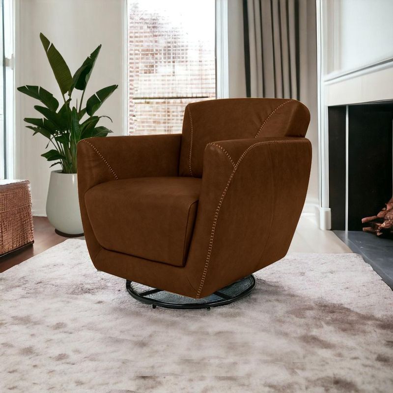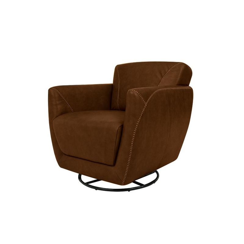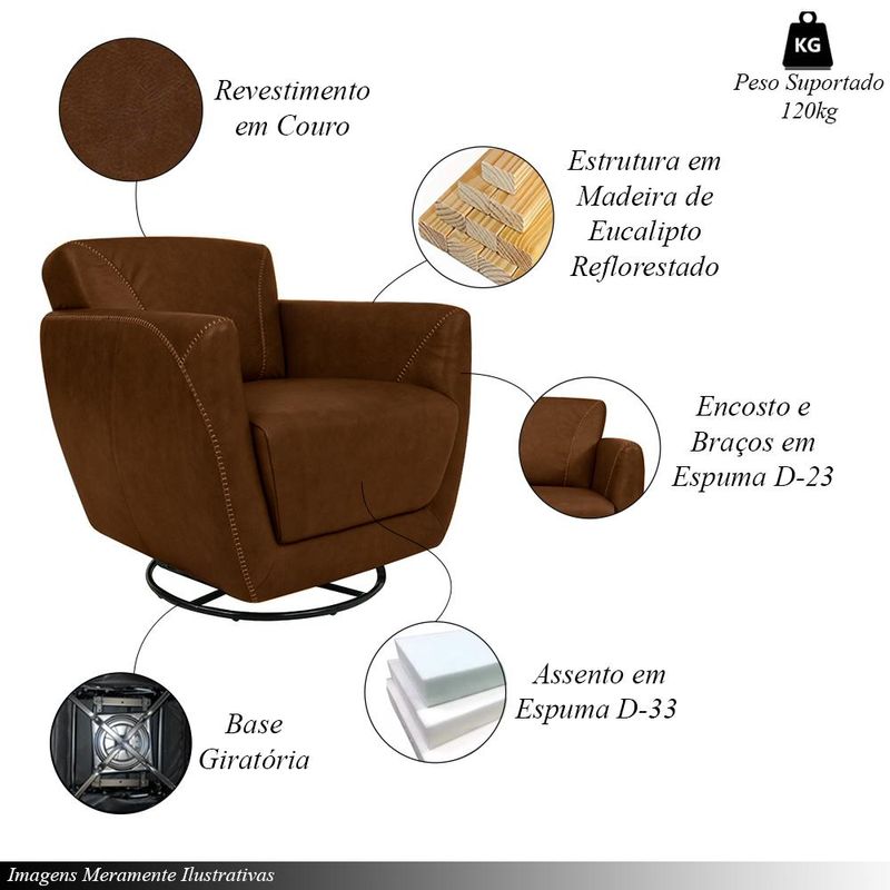 MóveisPoltronaPoltrona Decorativa Valentina Sala de Estar Giratória Couro Marrom Chocolate Manchado G40 - Gran Belo