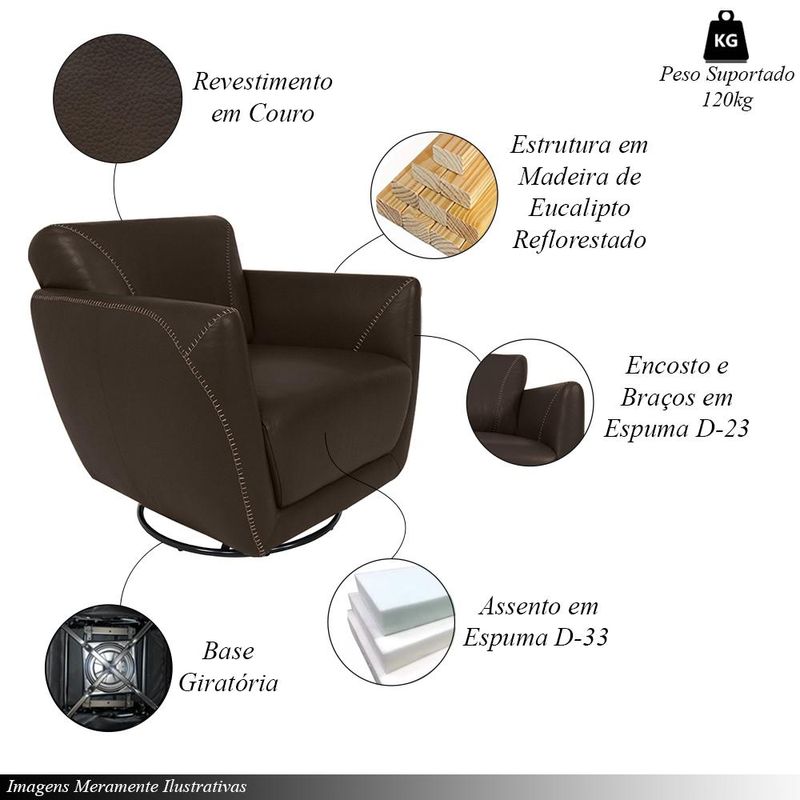Descubra a sofisticação e o conforto da Poltrona Valentina, a escolha ideal para transformar seu ambiente! Sua estrutura robusta é feita em Madeira de Reflorestamento (Eucalipto), garantindo durabilidade e respeito ao meio ambiente. O encosto, com Espuma D-23 Soft, proporciona um suporte macio e relaxante, enquanto o assento com Espuma D-33 oferece firmeza e resistência para uso prolongado. Os braços são acolchoados com Espuma D-23, garantindo conforto adicional e um toque elegante. A Poltrona Valentina é revestida em couro de alta qualidade, que combina beleza e praticidade, sendo fácil de limpar e manter. Seus pés em metal conferem um design moderno e uma base giratória adiciona funcionalidade e versatilidade, permitindo movimentação ágil e prática. Ideal para salas de estar, escritórios ou áreas de leitura, a Poltrona Valentina une estética refinada e conforto excepcional. Eleve a decoração do seu espaço com esta peça única e sofisticada!? Dimensões do Produto: