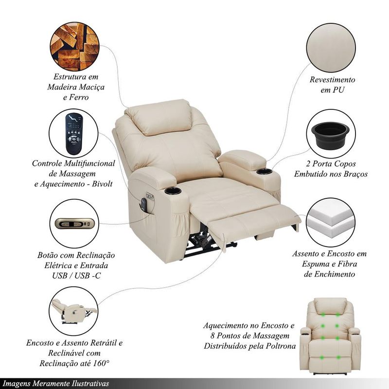A Poltrona do Papai Reclinável Elétrica Vector é a escolha ideal para quem busca unir conforto, tecnologia e praticidade em um único produto. Projetada para proporcionar momentos de puro relaxamento, ela combina funcionalidades modernas com um design imponente que valoriza qualquer ambiente, seja na sala de estar, quarto ou sala de TV. Sua estrutura é desenvolvida em madeira maciça e ferro, garantindo resistência e durabilidade, enquanto o assento e o encosto recebem camadas de espuma e fibra de enchimento que oferecem maciez e sustentação equilibrada. O revestimento em PU proporciona acabamento sofisticado e de fácil manutenção, aliado ao toque aconchegante que torna a experiência de uso ainda mais agradável. O grande diferencial está no sistema de reclinação elétrica, acionado por botão lateral, que permite ajustar a posição de forma prática e precisa, alcançando até 160° de inclinação. Além disso, a poltrona conta com função de massagem distribuída em 8 pontos estratégicos, abrangendo diferentes áreas do corpo para aliviar tensões e proporcionar sensação de bem-estar. Complementando a experiência, o sistema de aquecimento no encosto intensifica a sensação de relaxamento, ideal para dias mais frios ou para potencializar os efeitos da massagem. Para maior comodidade, a Poltrona Vector dispõe de entrada USB e USB-C integradas, permitindo carregar dispositivos eletrônicos sem sair do conforto da poltrona. Os porta-copos embutidos nos braços garantem praticidade no dia a dia, tornando-a perfeita para assistir a filmes, ler ou simplesmente relaxar. Combinando robustez, tecnologia e funcionalidade, a Poltrona do Papai Reclinável Elétrica Vector é a escolha perfeita para transformar seus momentos de descanso em experiências completas de conforto e sofisticação.