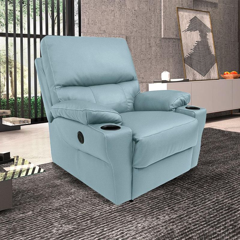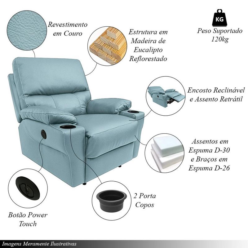 MóveisPoltronaPoltrona do Papai Sala de Cinema Mia Reclinável Retrátil Power Elétrico Base Fixa Couro Azul Celeste G40 - Gran Belo