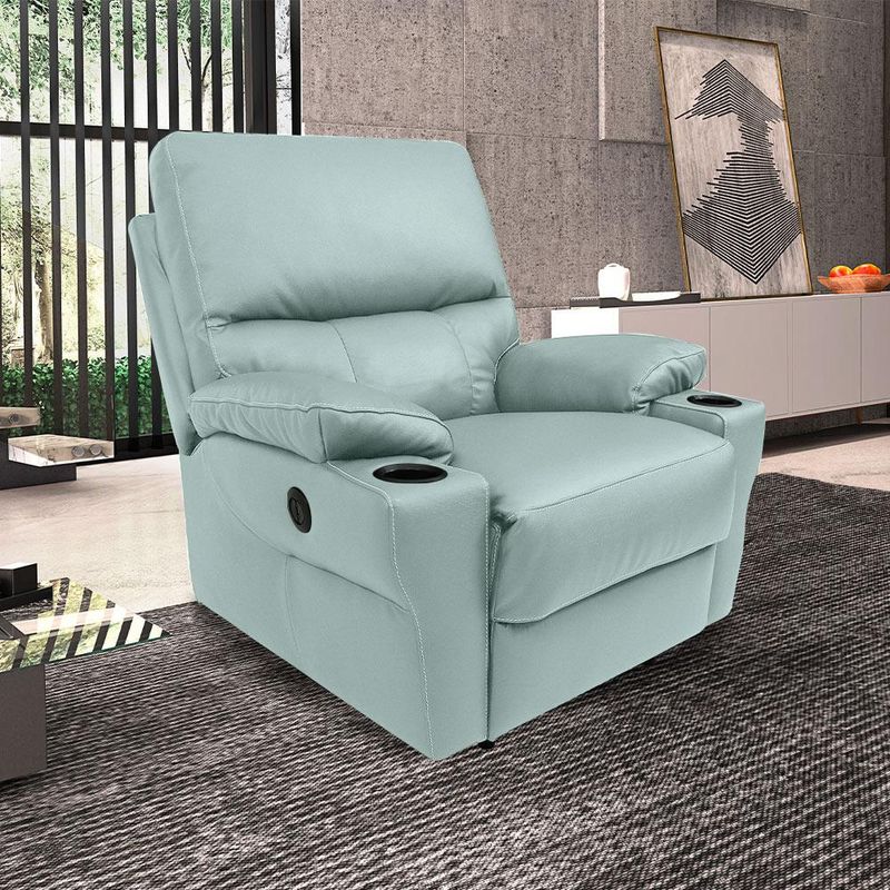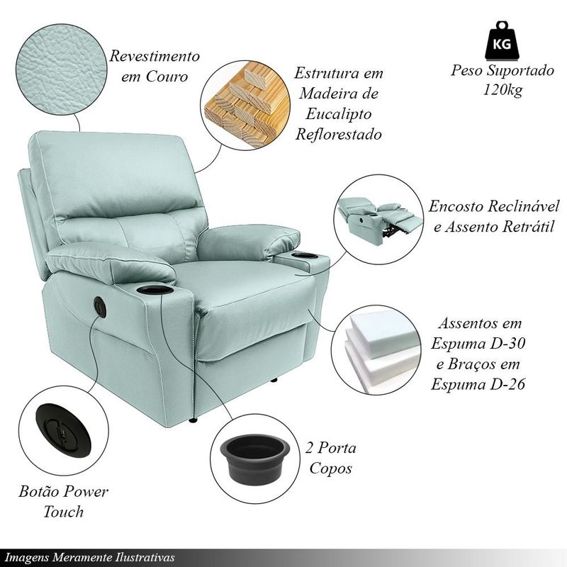 MóveisPoltronaPoltrona do Papai Sala de Cinema Mia Reclinável Retrátil Power Elétrico Base Fixa Couro Azul Claro G40 - Gran Belo